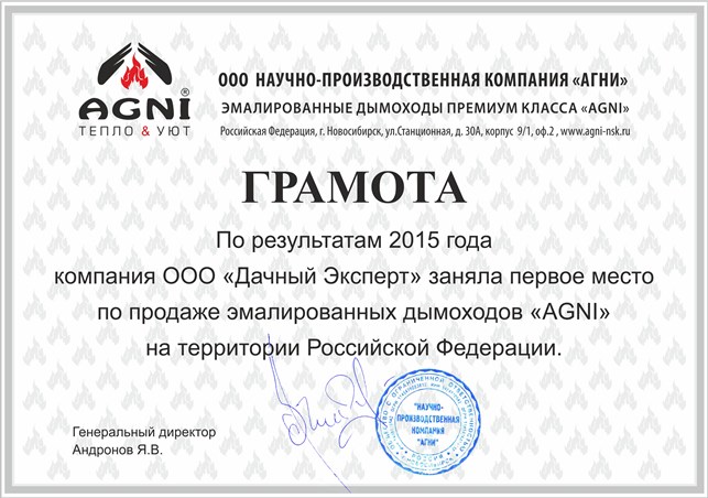 17. 2015 год - лидеры по объему продаж эмалированных дымоходов AGNI в России